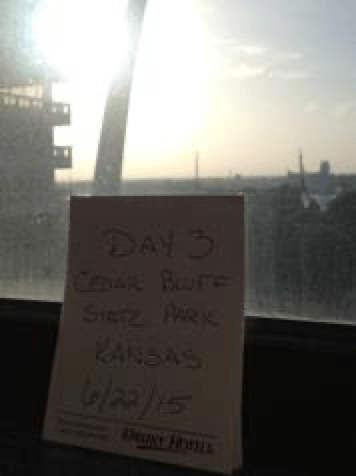 We checked into our cabin, aptly named The Jumpin’ Catfish.  (Yes, I’d had Nate in mind when I booked that one.)  It was adorable.  From top to bottom, it was cute as can be – and covered with walking stick bugs (on the outside…not in – thank goodness!).  Funny how some bugs can creep you out completely and others are, for lack of a better word, cute.  Walking sticks definitely fall into the latter category.  So, if you happen to stop in Kansas and need a place to stay, Cedar Bluff State Park is it.  A great camp!