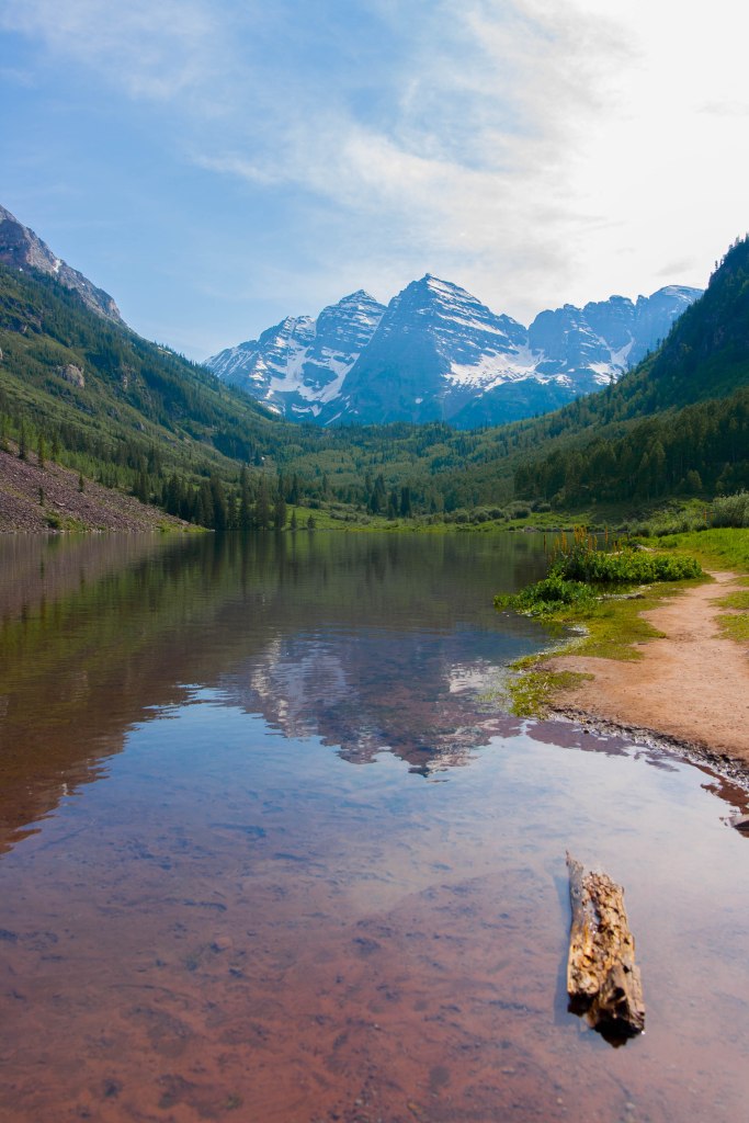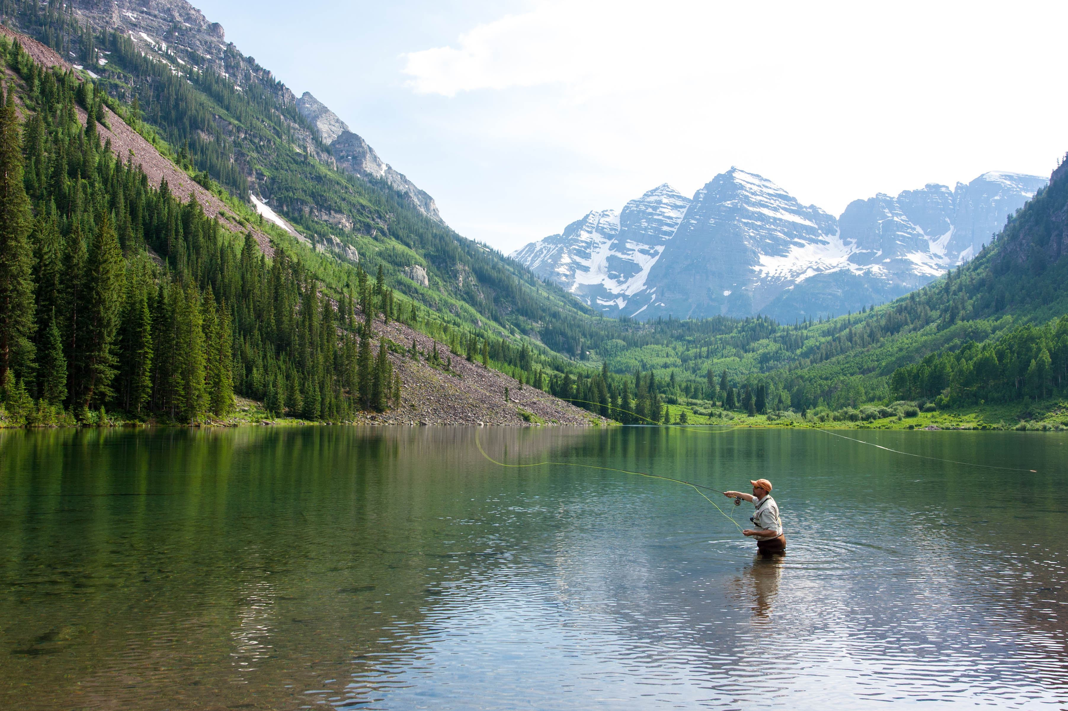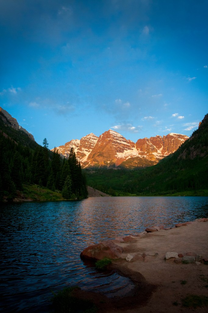 After setting up camp, we debated just calling it a night, but we were both too excited to actually relax. So…off to Maroon Lake for some stunning views of the Maroon Bells and the amazingly clear waters of the lake. Nate threw on a pair of waders and was in the lake without even having to be asked if that’s what he wanted to do. He caught (and actually reeled in) his first cutthroat trout. Though the fish here are small, they are native to the area and brilliant in color…which kind of makes sense because just about everything is brilliant in color. It’s an amazing view and breathtaking (literally – remember the altitude involved).