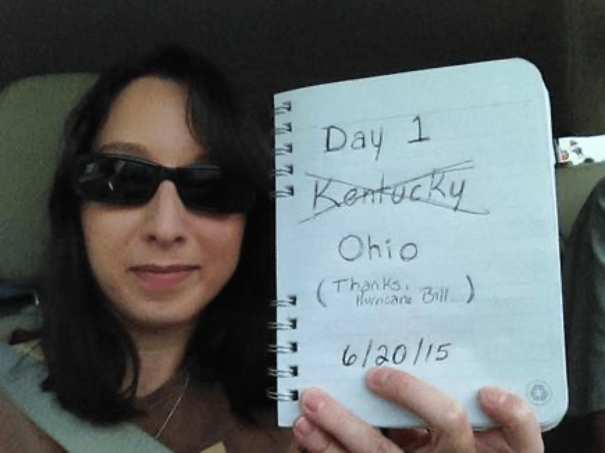So when the big day was just about here, I was more than a little crushed when the remnants of a hurricane were moving through Texas and into the midwest, scheduled to hit Lexington, Kentucky, just as we were supposed to be setting up our first campsite. This was NOT the way things were supposed to go. I wasn’t supposed to have to change plans on the very first night! When I drew up the schedule, I figured we’d probably end up sleeping in our car at least one night. I just never bet on it being the very first one.