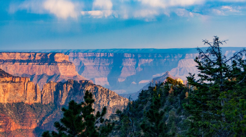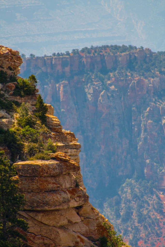 Hooray, we were finally blessed with a day when we could wake up slowly and take the day easily.  I had booked two nights at the Grand Canyon and we were grateful for the down time.  Showers and shopping for souvenirs before a short drive to Cape Royal where we’d been told by another camper and photographer that there’s a great view of the canyon, perfect for pictures.