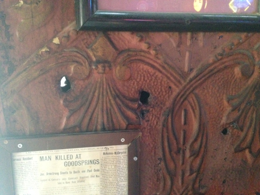 After our breakfast, and our educational update on The Pioneer Saloon, we perused into the saloon to take a good look around. Sure enough, three bullet holes still remain in the original tin wall where a man was killed after cheating at poker. The floor and tables are original to the building and there’s definitely a creepy ambience despite the friendly bartender and the patrons that were now wandering through the door for lunch.