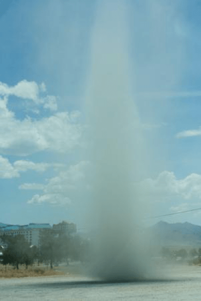 Back down the dusty road, we encountered the biggest dust devil we’d seen to date, right before getting on the highway. Truly fascinating and, well, just plain weird. I wonder if that sight ever gets old to those who live in the desert area.