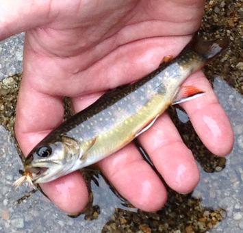 The native brook trout, though tiny, were feisty and Nate caught several.  Since they weren’t used to people, Nate discovered that some stealth was required to catch them.  If they saw you, they were gone…