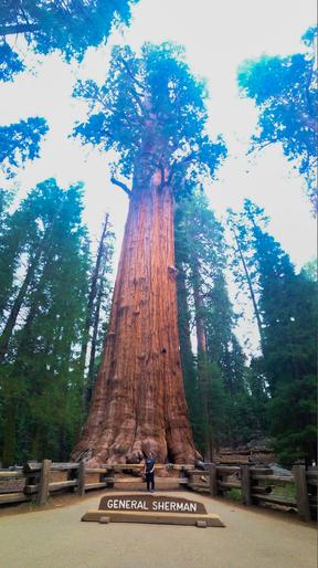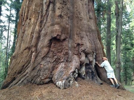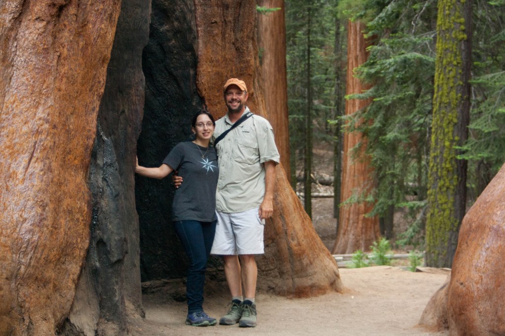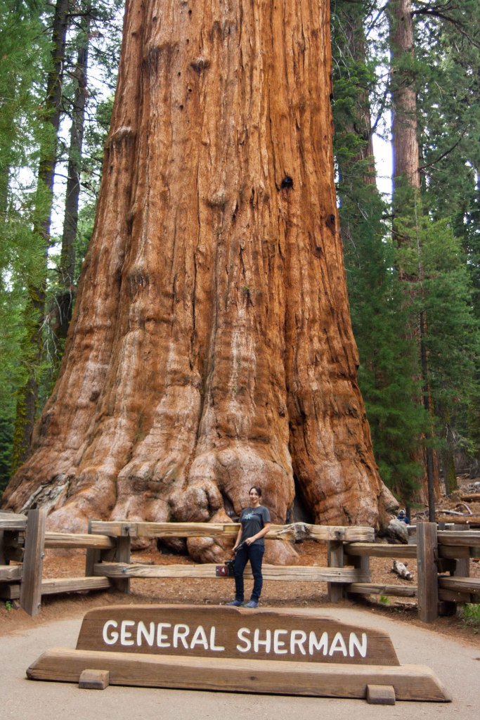 We made our way down the path to General Sherman, and while he was not the most gorgeous specimen, he was regal nonetheless.  There was a line to take photos next to him.  Dutifully, I stood in line so that Nate could get a picture of me with the tree, but no camera could really capture the stunning presence that these trees have.  (So go see them in person!  You won’t be sorry!)