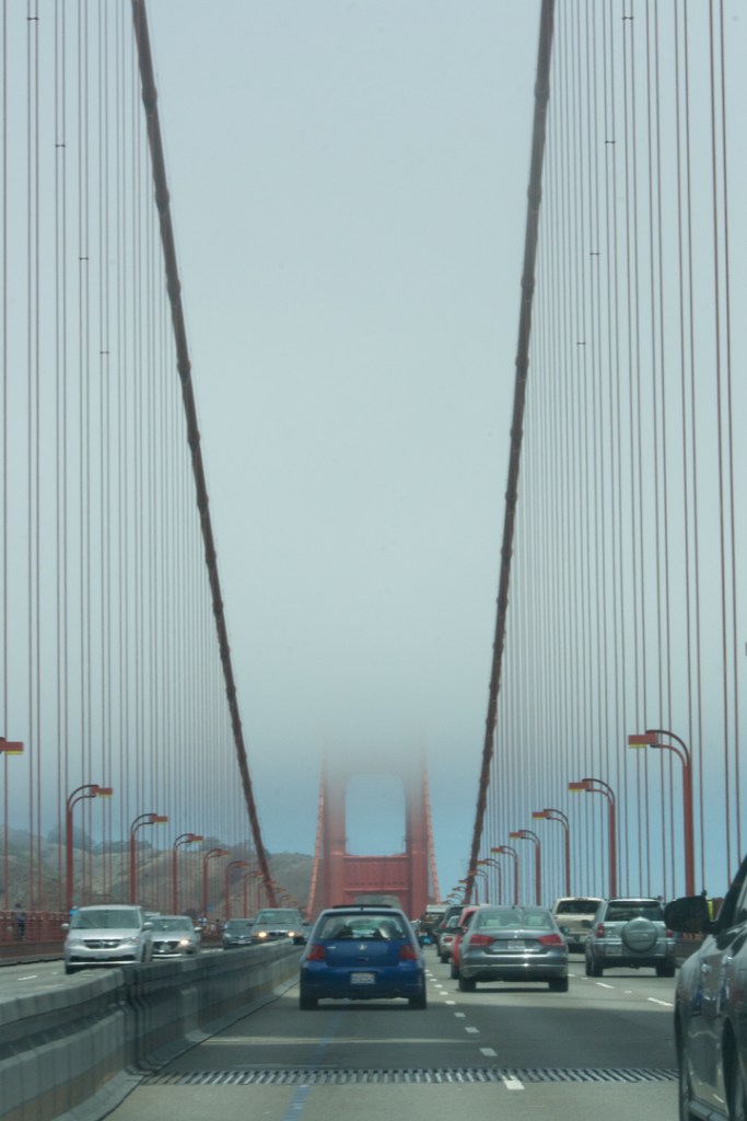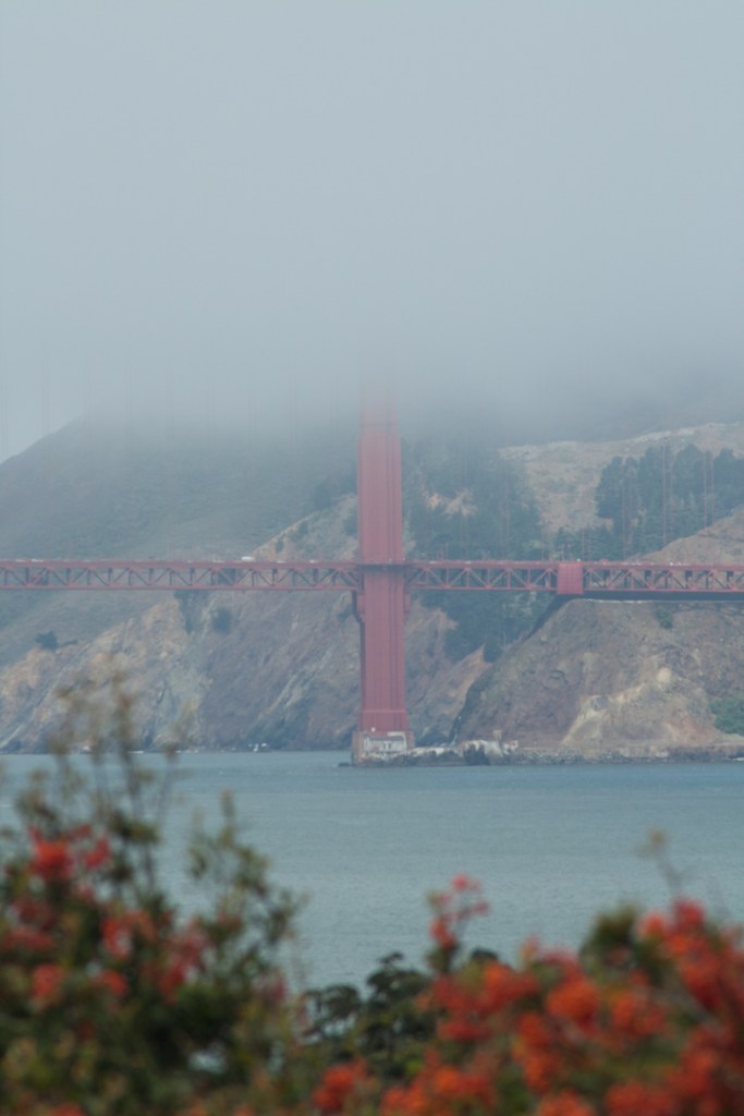 It was a regrettable decision that later resulted in my purchasing a windproof, waterproof jacket from a completely packed souvenir shop at Pier 39.  But, hey, at least now I own a purple jacket to go with my purple hiking boots…  A fierce wind had kicked up and I won’t lie.  It made me nervous.  I had checked weather reports and I knew there was no storm in the area, but for the life of me, it certainly felt like it was about to storm!  Weird as can be!