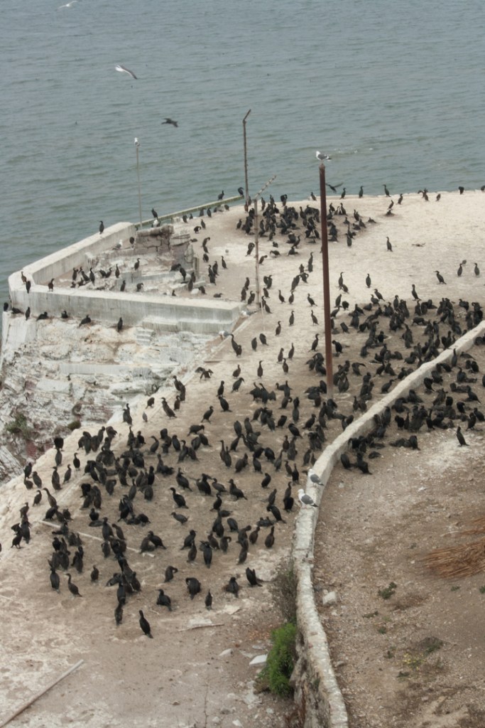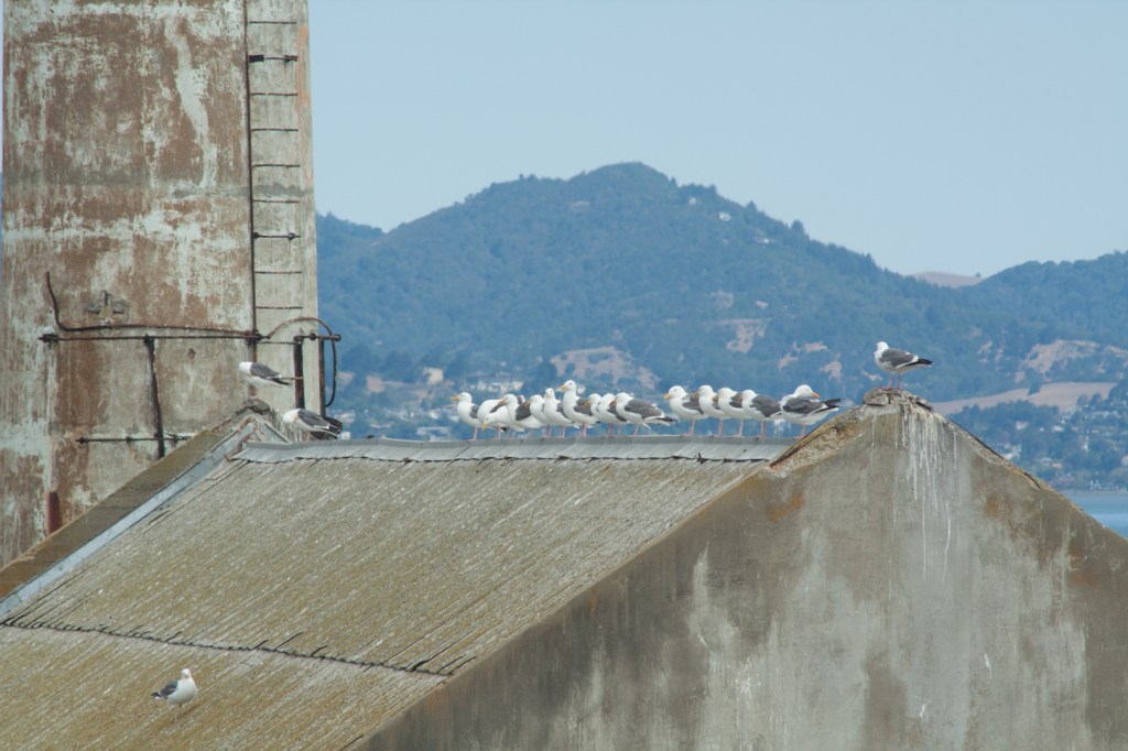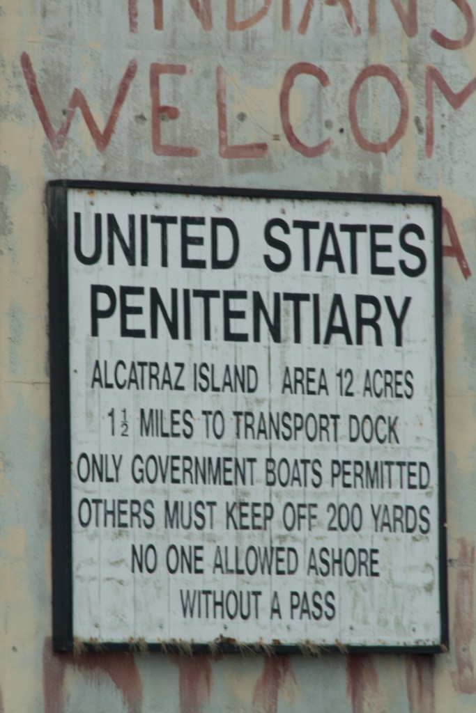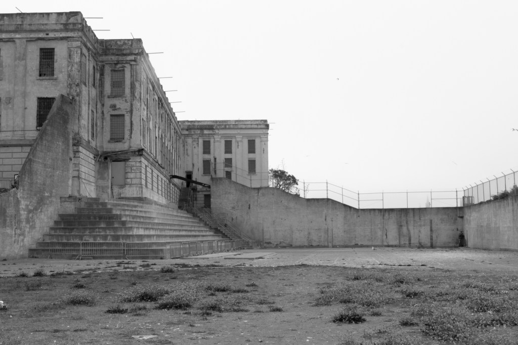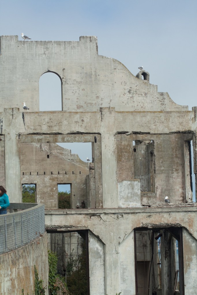 Once on Alcatraz, we wandered the halls and the yards, imagining what it must have been like for those sentenced there.  The isolation cells are in complete darkness and they are very intimidating – especially for someone who never even got detention as a kid.  Yep, looked scary enough to me.  We were told that the longest anyone ever spent in isolation was 19 days.  I had a hard time imagining ten minutes.  It was pretty much what you would expect of Alcatraz. Never mind that the entire island smelled like fish and bird poop.  Sweet!