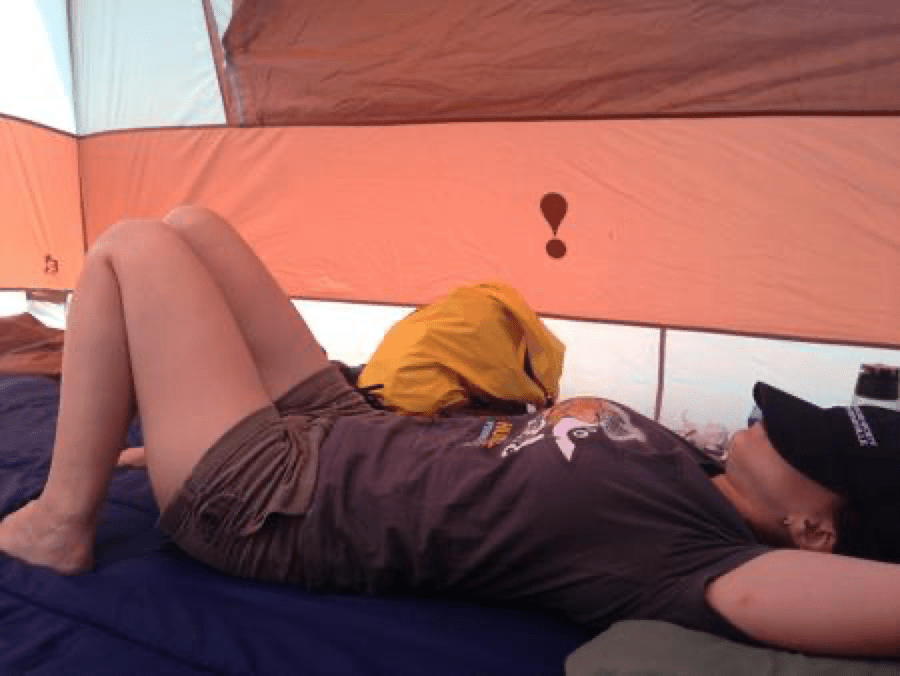 Despite that it rained for a solid hour, the tent remained dry and cozy. When Nate arrived back an hour later, he quickly climbed into his sleeping bag in attempts to warm up and catch up on a little sleep of his own. I guess hail kind of takes the fun out of fishing. (News to me. I thought nothing could defeat Nate’s love for fishing!)