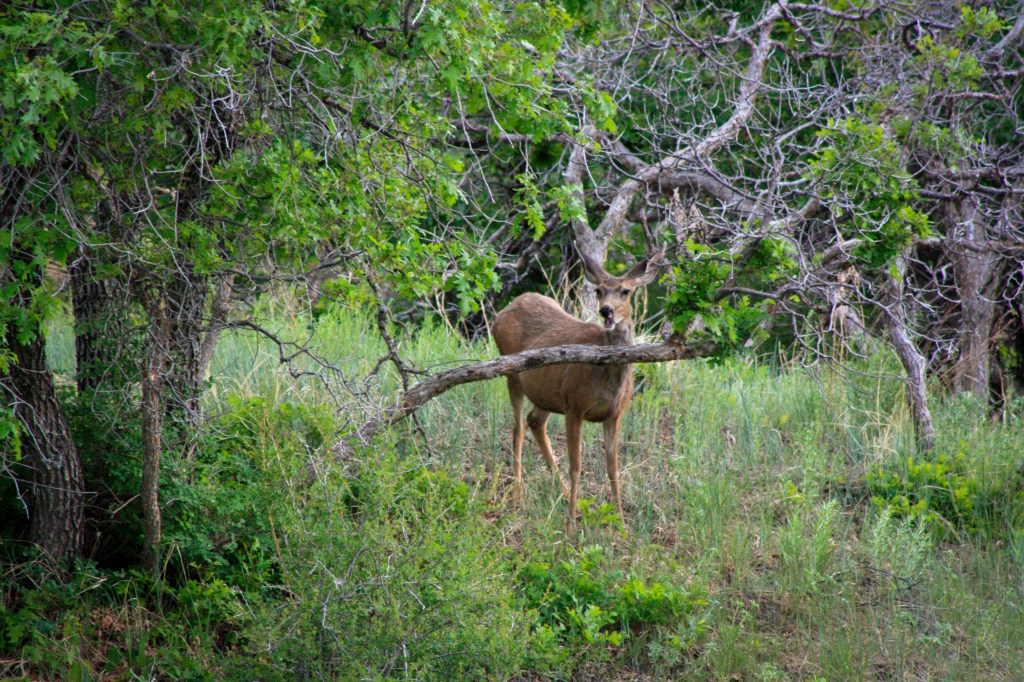 A quick camp meal and some local exploring for Husband and kids, while I play with photos on my computer at the camp picnic table and receive a visit from a sweet black-tailed doe. At 9, we head to the amphitheater for a presentation by a park ranger about some of the animals in the park.