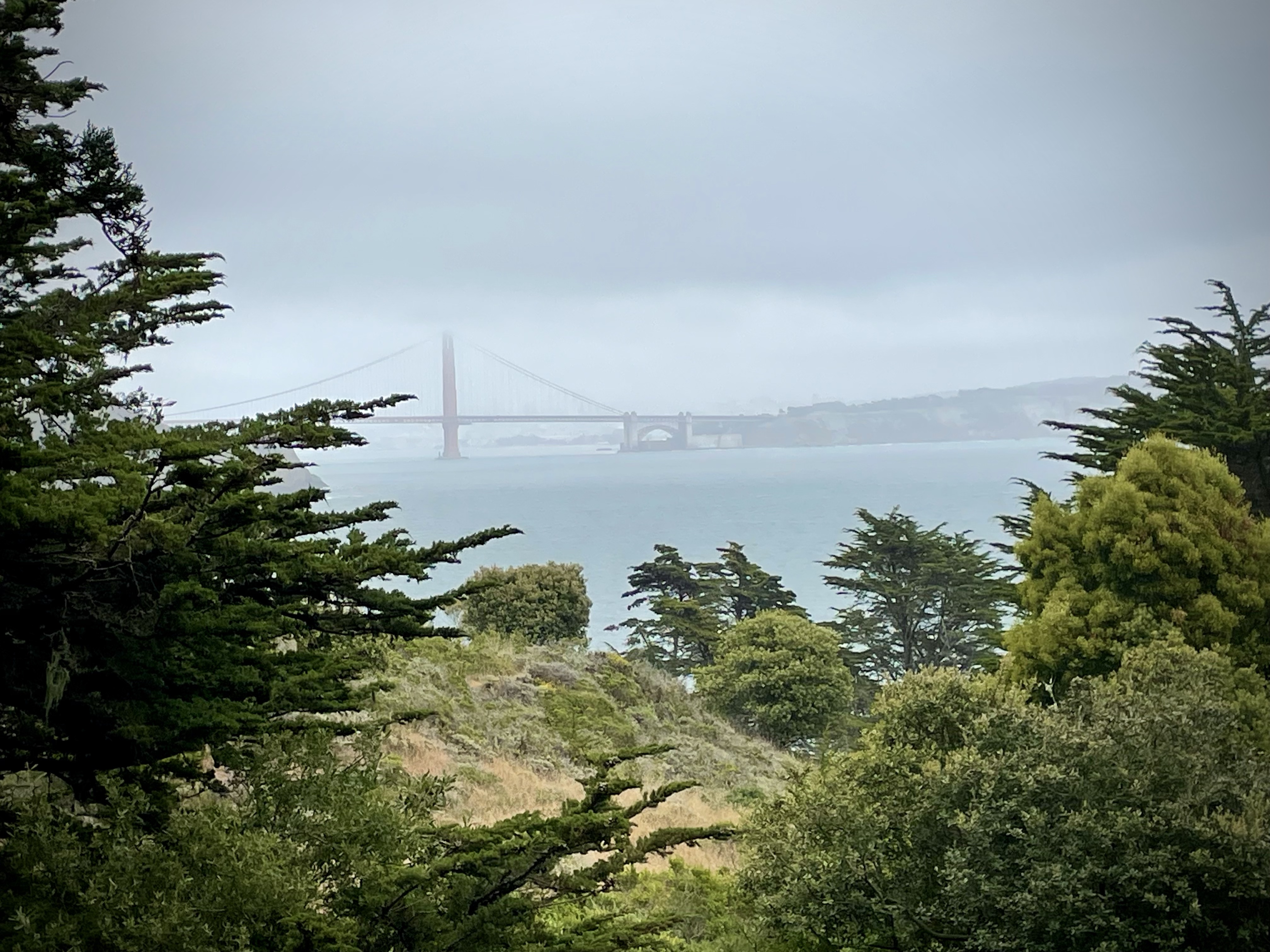 The view of the Golden Gate Bridge is spectacular, but even that’s not enough for me to want to stay. It’s time to pivot. I use that wonderful cell reception to find a hotel less than a mile away. Now both kids feel bad and say they could just suck it up, but guess what? *I* don’t want to be freezing in a tent all night, have no running water, and have to use a port-a-potty. We’ve done pit toilets a few times on this trip, but this is a new low. So yeah, I look forward to the hotel, too.