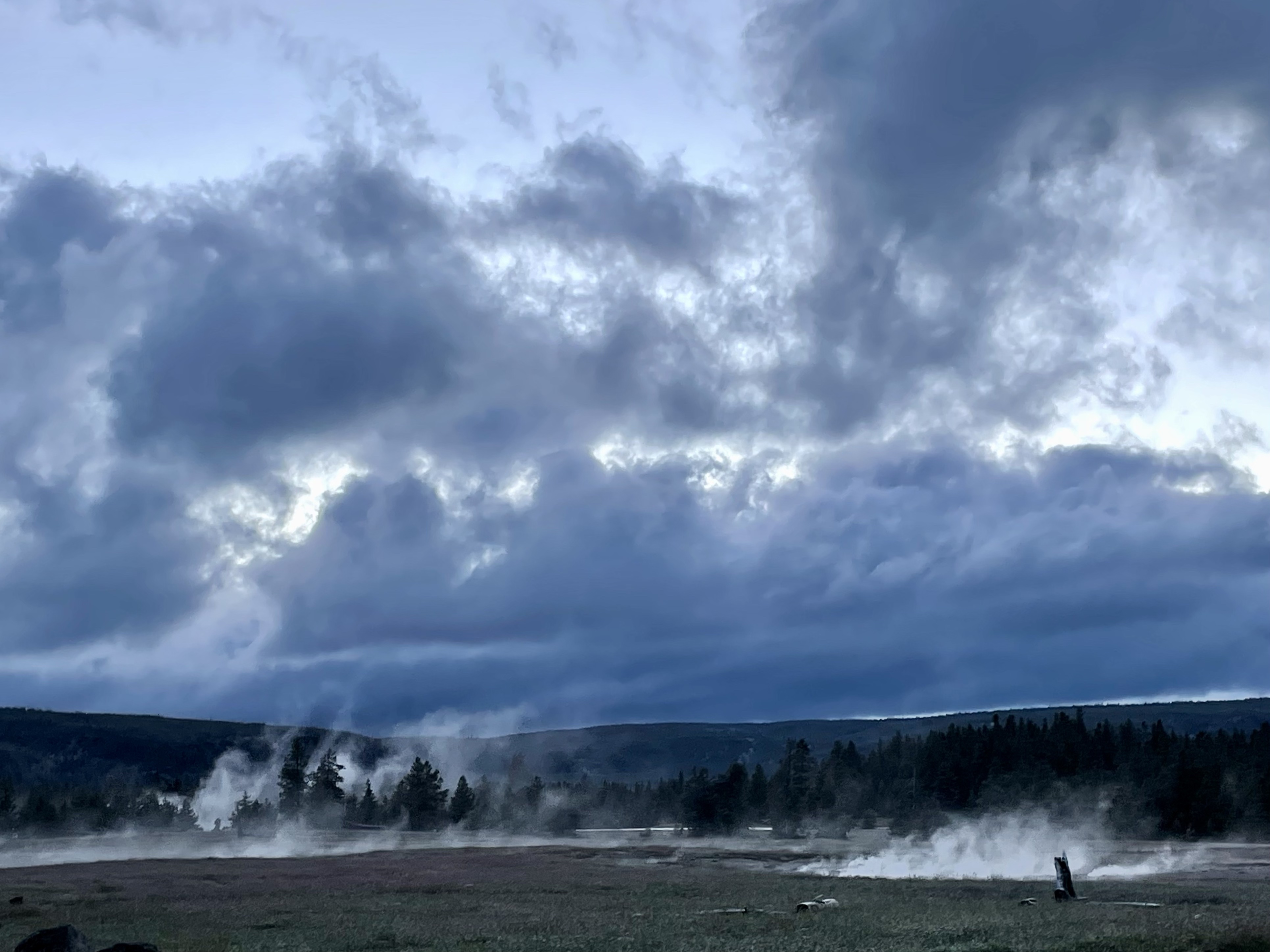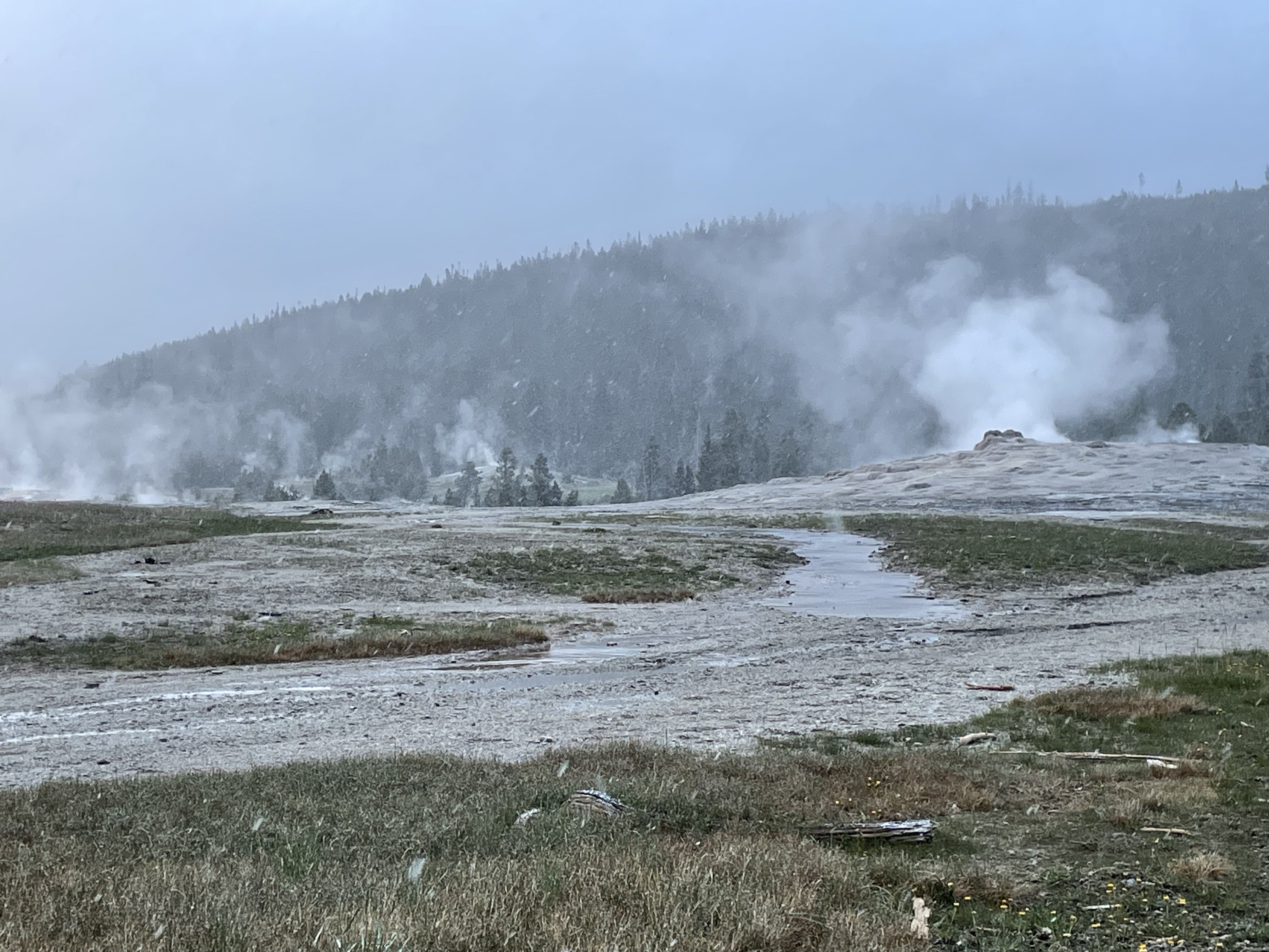 We drive three extra hours to try to see sites around the park, but the traffic is awful and all we manage to see is a bunch of steam from hot springs beyond our sight (there’s no parking to be had) and the occasional bison. The parking lots for Old Faithful and for the Grand Prismatic Spring are packed. It’s a zoo.